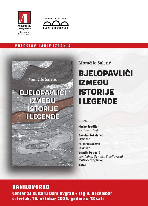 Drugo, dopunjeno izdanje knjige „Bjelopavlići između istorije i legende“ Momčila Šaletića koje je objavila Matica crnogorska, biće promovisano u četvrtak, 16. oktobra 2025. godine u 18 sati u Centru za kulturu u Danilovgradu.