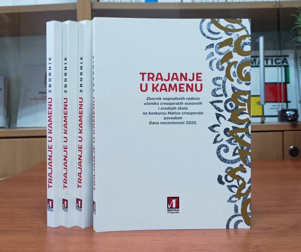 Matica crnogorska objavila zbornik nagrađenih radova učenika osnovnih i srednjih škola na konkursu „Trajanje u kamenu“ organizovanom povodom Dana nezavisnosti 2025. godine